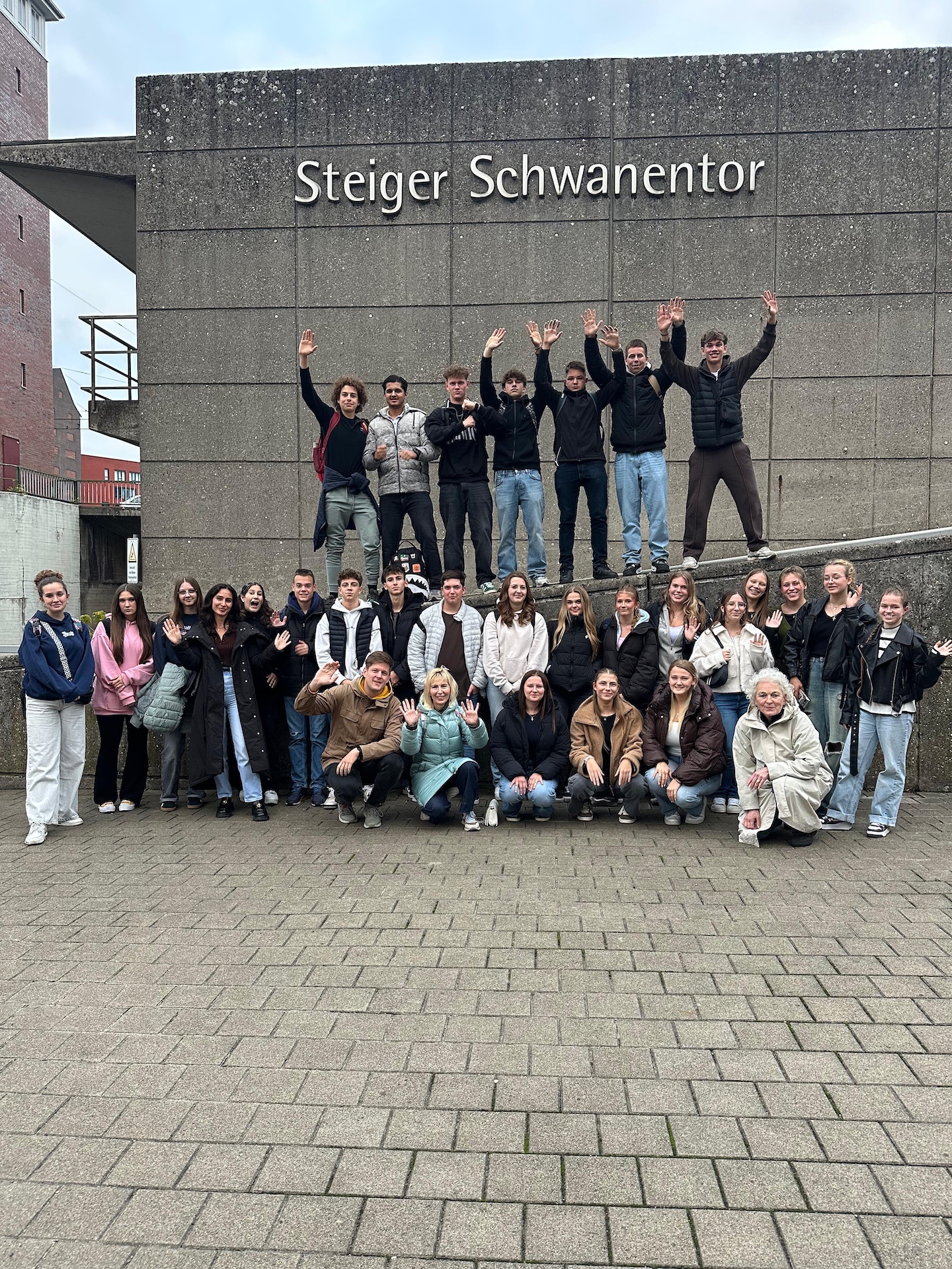 Vom 07.- 11.10.25 waren 14 ungarische Schülerinnen und Schüler sowie eine Deutschlehrerin und ein Deutschlehrer aus Gödöllö bei uns in Duisburg. Die ungarischen Schülerinnen und Schüler nahmen vormittags am Unterricht teil - nachmittags gab es ein interessantes Kulturprogramm und auch das Ungarische Generalkonsulat in Düsseldorf hat uns empfangen.