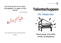 „Die Musik spricht für sich allein. Vorausgesetzt, wir geben ihr eine Chance“ Yehudi Menuhin Oh, happy day Wir wünschen einen vergnüglichen Abend. Donnerstag, 27.6.2019 19 Uhr im Musiksaal …