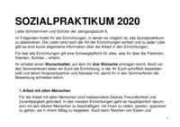 SOZIALPRAKTIKUM 2020 Liebe Schülerinnen und Schüler der Jahrgangsstufe 9, im Folgenden findet Ihr alle Einrichtungen, in denen es möglich ist, das Sozialpraktikum zu absolvieren. Die Listen sind nach…