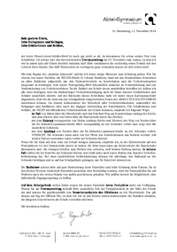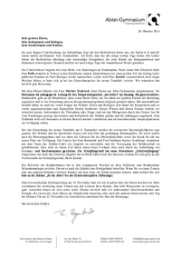 20. Oktober 2014 Sehr geehrte Eltern, liebe Kolleginnen und Kollegen, liebe Schülerinnen und Schüler, die erste längere Unterbrechung des Schulalltags liegt mit den Herbstferien hinter uns; die…